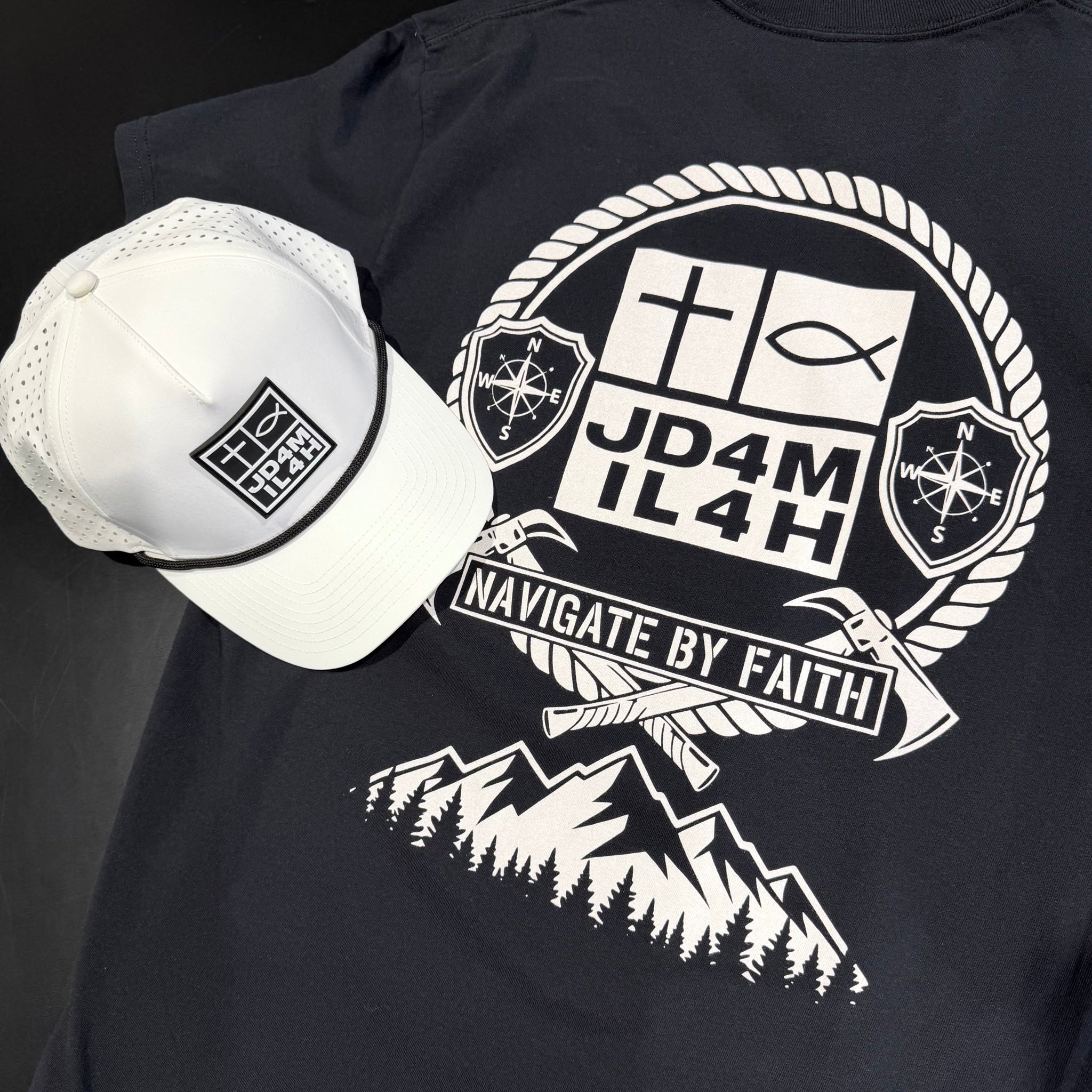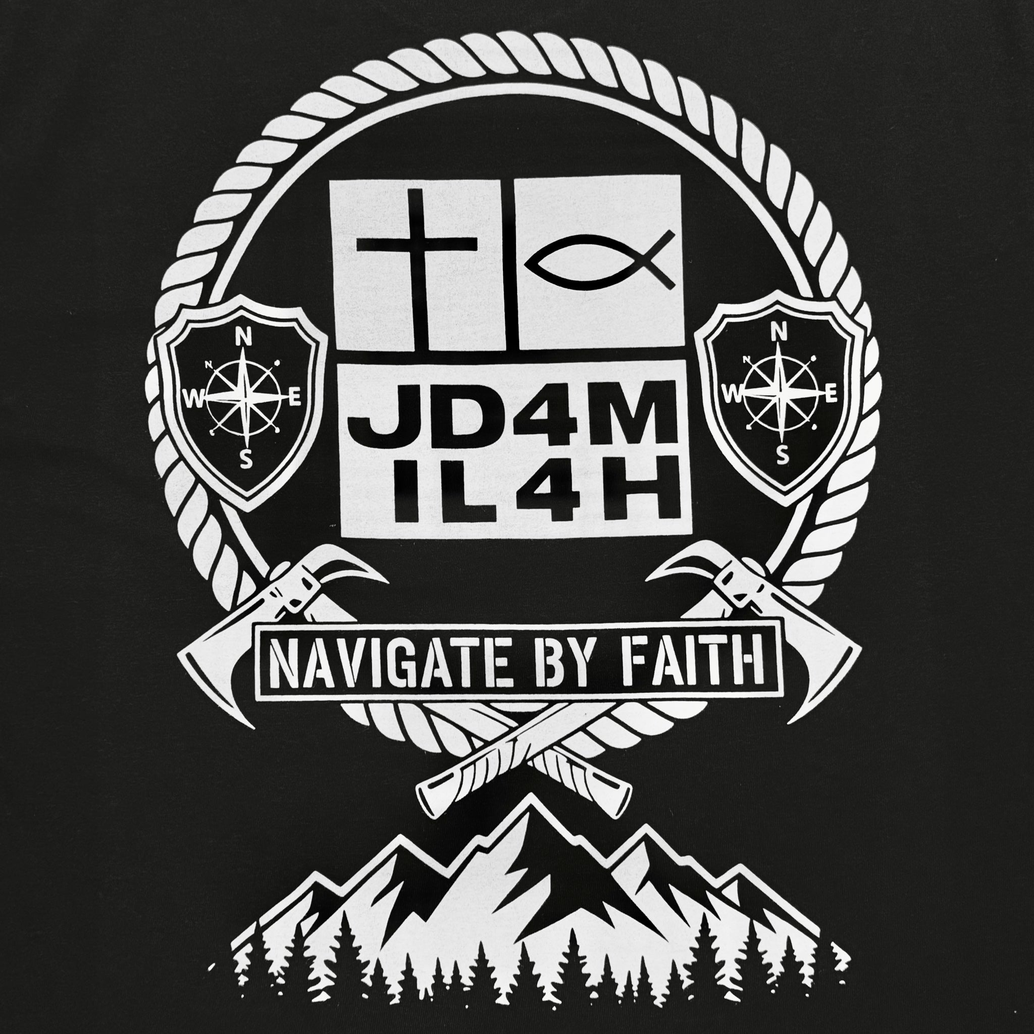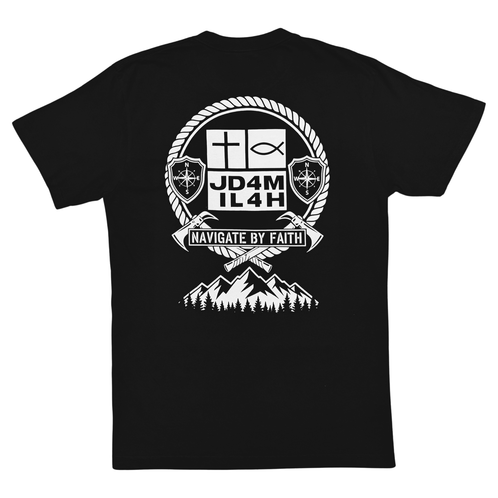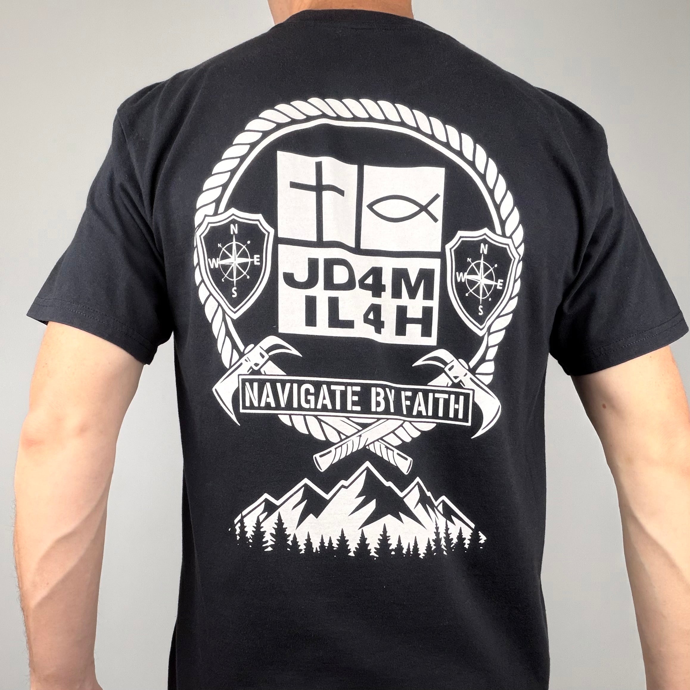 The Navigate by Faith unisex, black color t-shirt features our logo and the great outdoors reminding us to trust God’s direction daily. A strong faith-forward shirt perfect for everyday wear, church, or outdoor adventures. Live with purpose—Navigate by Faith.